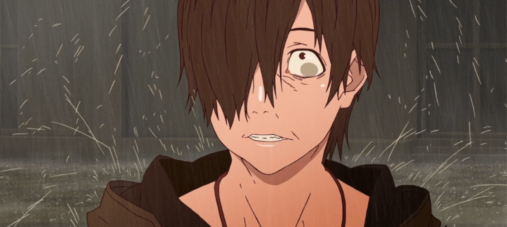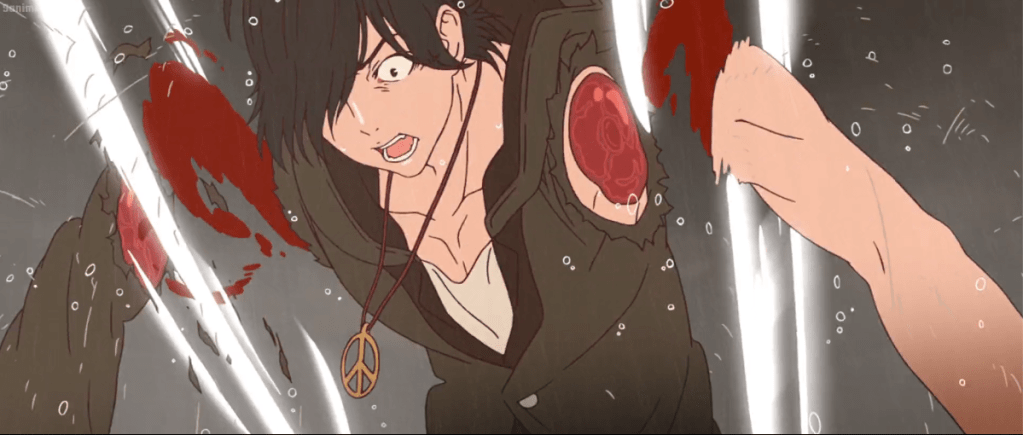 Man, at times this is super brutal! It’s an exceptional fight sequence taking place in the rain, giving it perfect atmosphere. And the way the animation again swings from basic manga style through to finely detailed and then to comedic is amazing. The animators certainly got to have some fun here. But not only does it look great, it manages to keep things fresh and interesting, keeping your attention on what is happening.