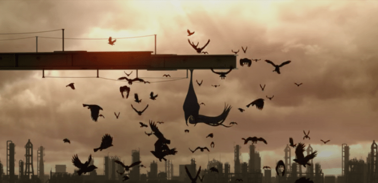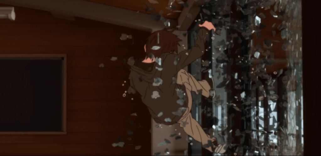 So, schoolboy loner Araragi chances upon a legless, armless vampire and, weirdly agrees to give up his blood to her to save her life. However he gets turned instead of just being food. This sequence in the subway station is just superb. The bright red of the blood against the white tiles and above all of that, the animation work in the editing give it a real edge.